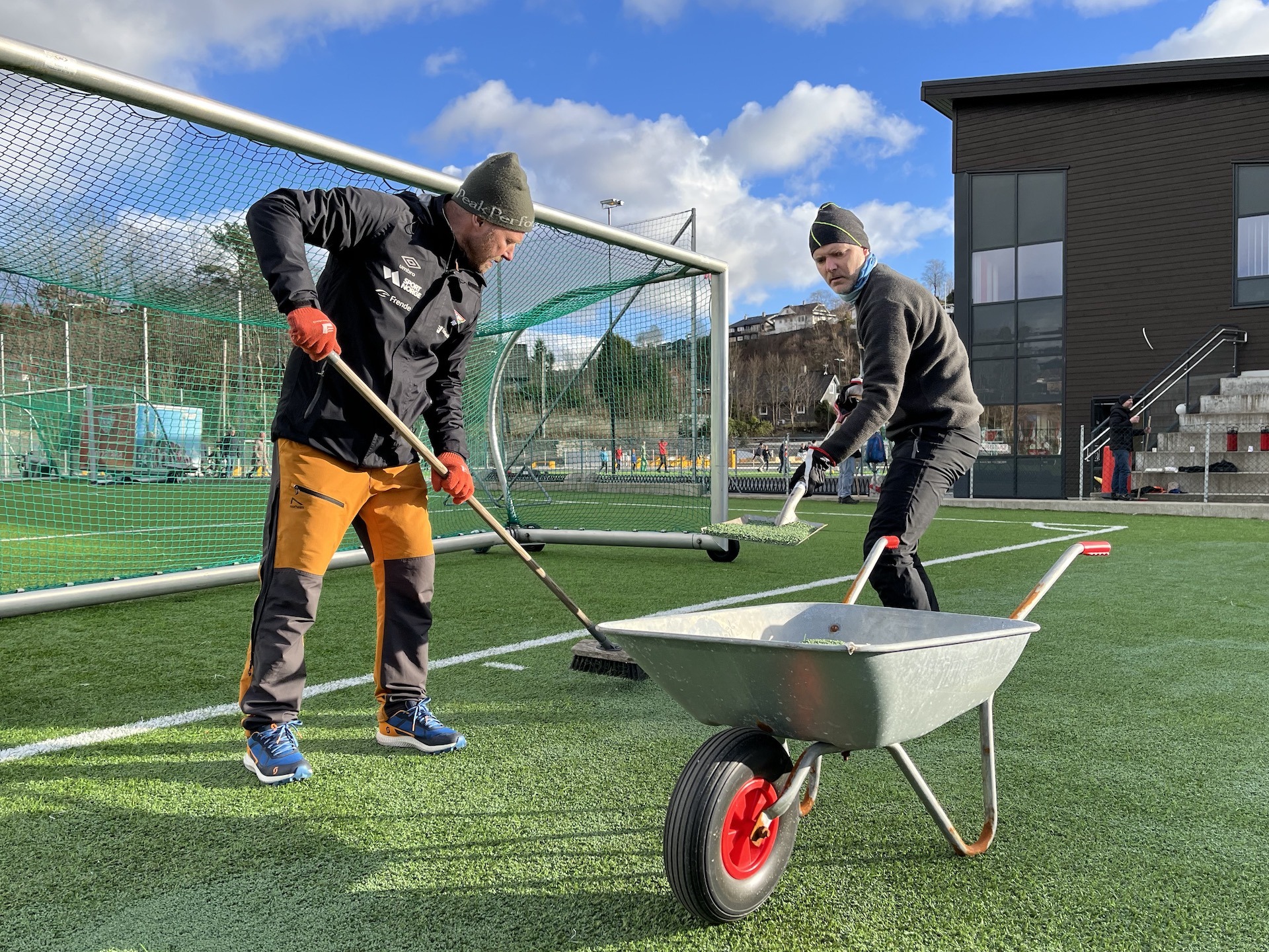 Denne gang står enkle og viktige oppgaver som plukke boss, rake gresset, koste fellesarealene, håndtere granulat på avveie, kvalitetssikre målene, vaske vinduer og annet forefallende arbeid.