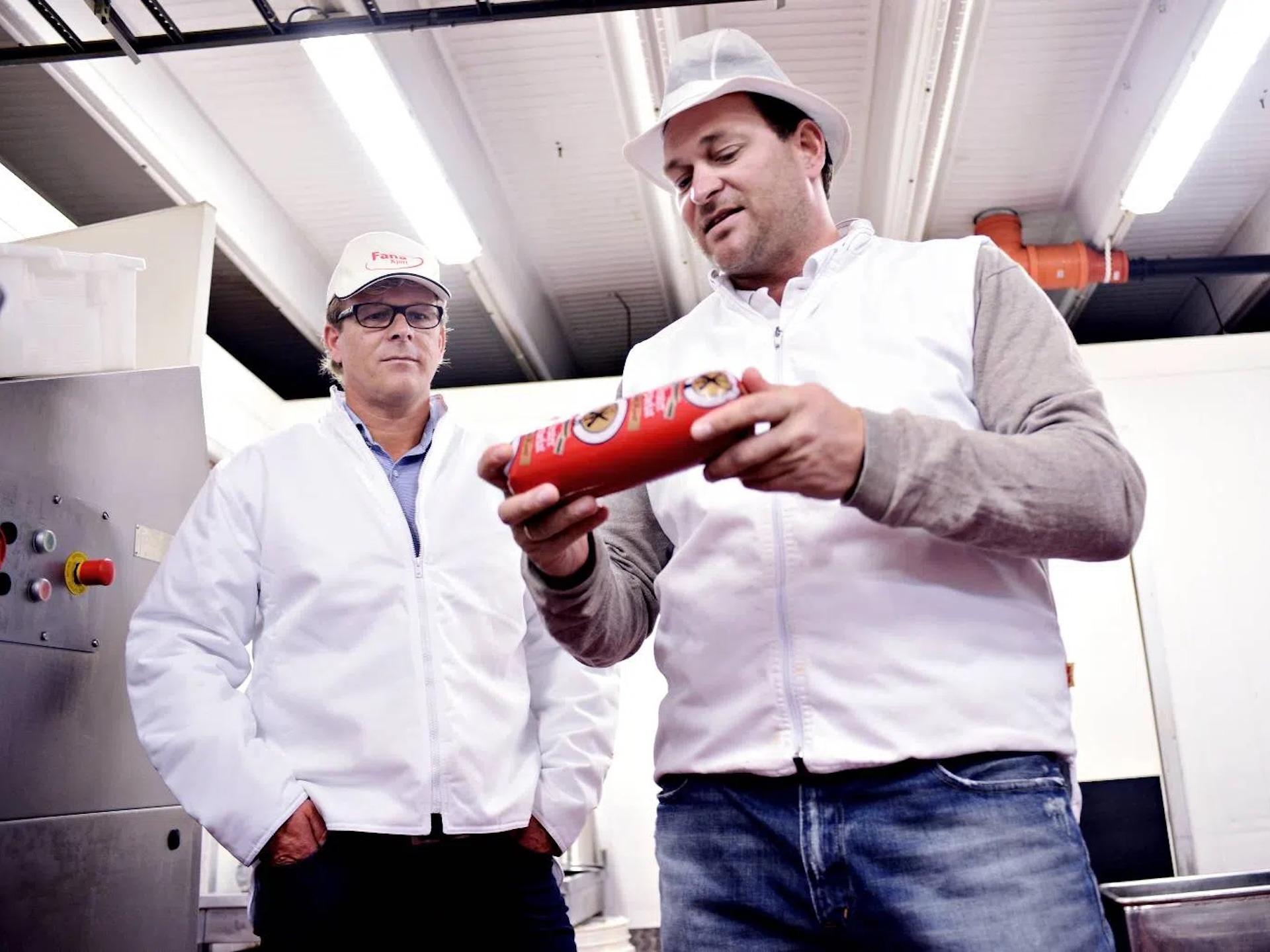 Deretter ble Fana-landslaget kledd opp i riktig antrekk for å ivareta strenge krav til hygiene - og geleidet rundt i selve produksjonen.